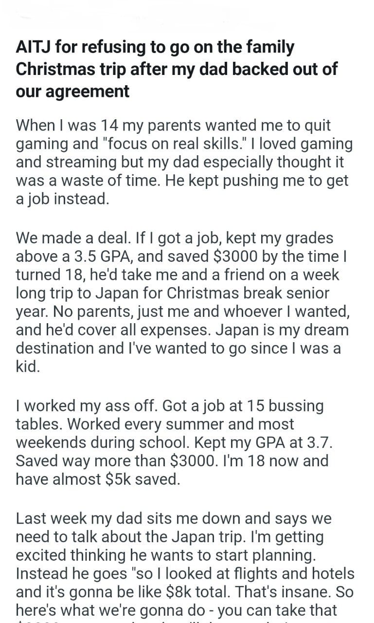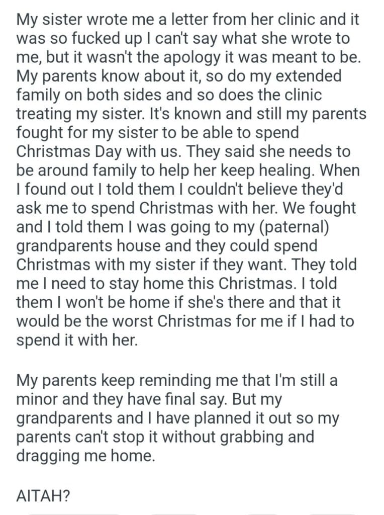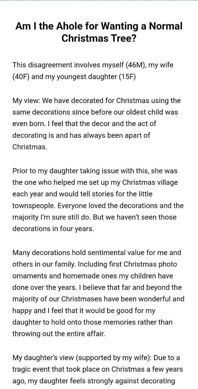 spend Christmas at home Related Posts the same Christmas present the wedding weekend friend’s daughter her company’s annual cousin’s pregnant gf even though I’ve always boss’s PTO knit at work my personal needs for what her grandparents said wife’s espresso giving my husband food babysit my sister’s kid a text I sent WIBTA if I called