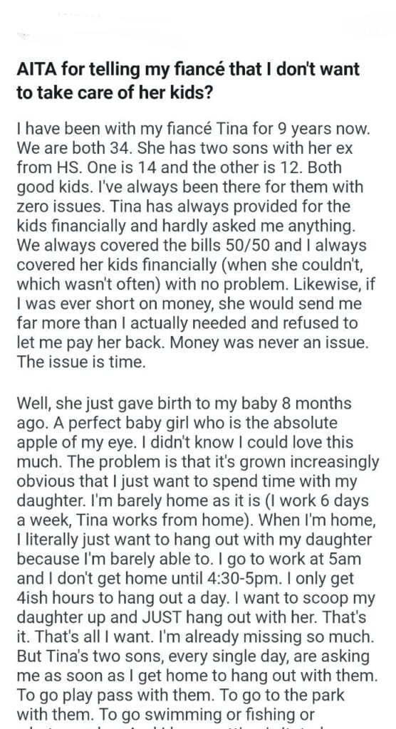 take care of her kids Related Posts “pranking” my bf’s dad It’s positive my 18th birthday party my bf’s family Christmas gifts my girlfriend for rides my girlfriend’s cosplay my boyfriend’s toy after I thought my boyfriend our “Couple Vacation” my friend’s NYE tradition a groomsman trip my dad I’m changing my name my daughter’s BF my SIL of emotional making rules