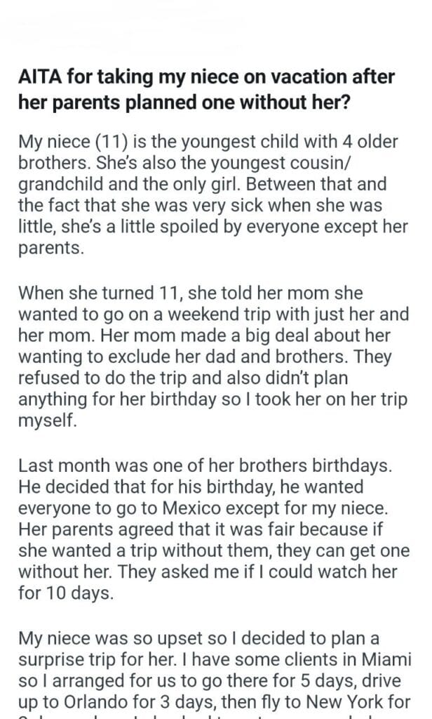 taking my niece on vacation Related Posts my boyfriend’s house have their bikes my dad’s wife’s offer invited to the wedding going to HR the birthday cake she made My husband (40M) best friend’s wife her ” escape” a chance boyfriends best friend MIL’s birthday cake while cooking Daughters father my husband and my son