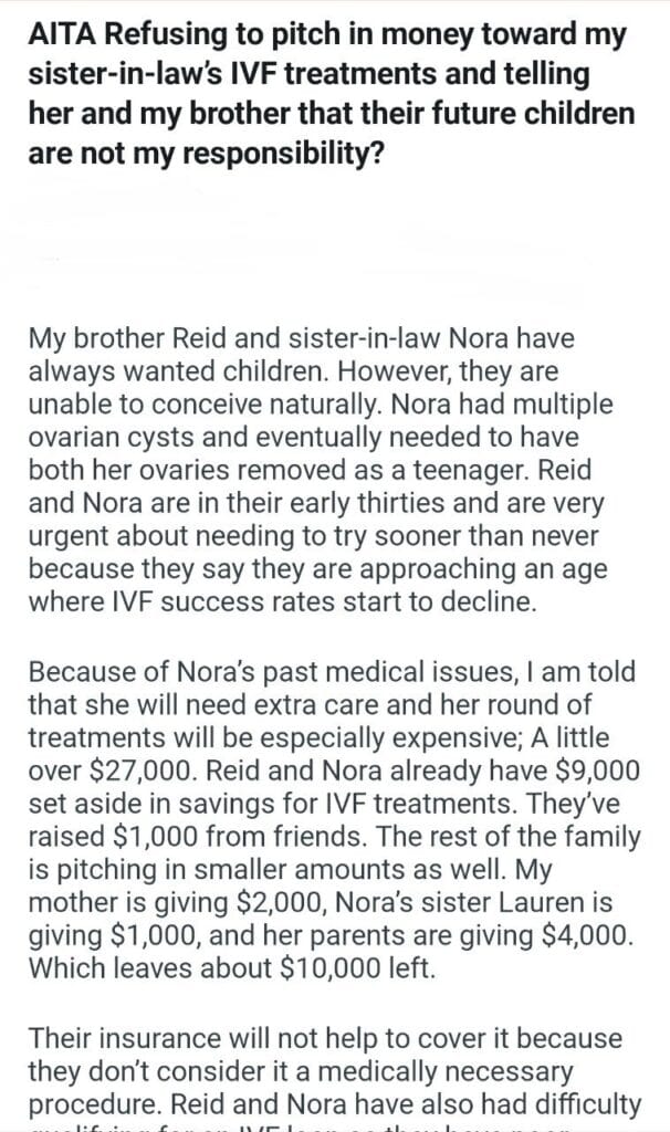 telling her and my brother Related Posts my son my grandmother’s ring my sister for her kids my husband ultimatum share with a coworker renting an apartment with my boyfriend my dad’s old house AITA for how I reacted AITA for telling my son AITA? Mom thinks she’s he didn’t do anything her next cycle over a joke the dogs for food my girlfriends dogs at her front door bday party