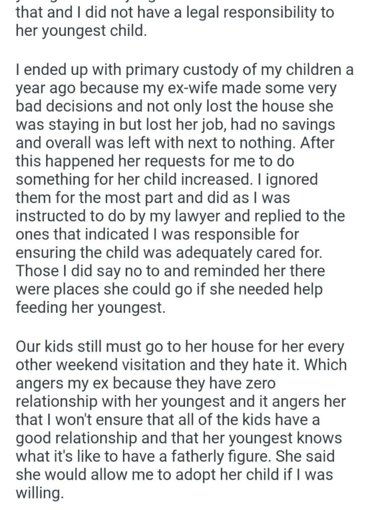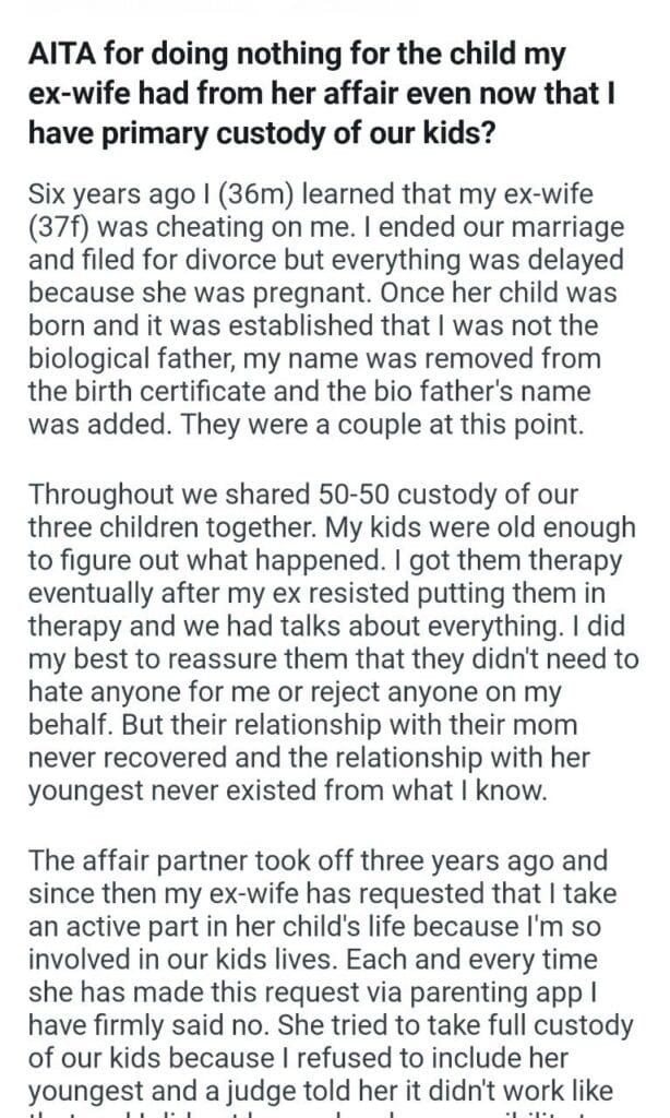 the child my ex-wife had Related Posts my partner’s early birthday put my girlfriend my 16yro son eighth baby he went through my phone picture of my husbands wife he expects me to contribute trying to test what I told her my son’s account quiz show my son’s account my son phone 31 students AITAH for telling my cousin