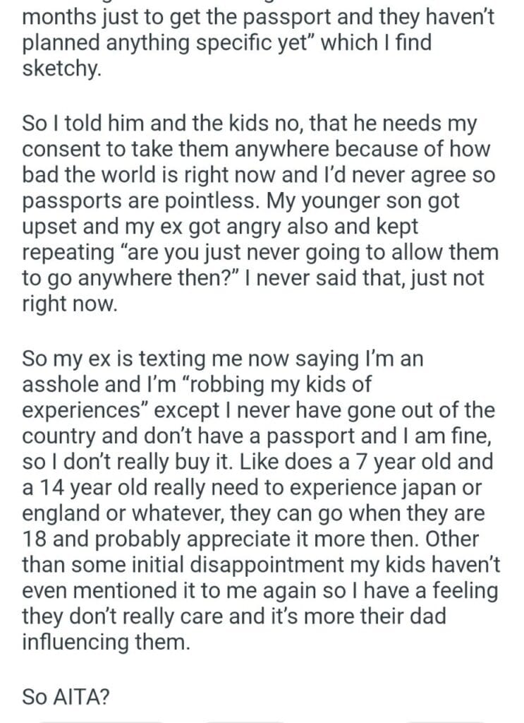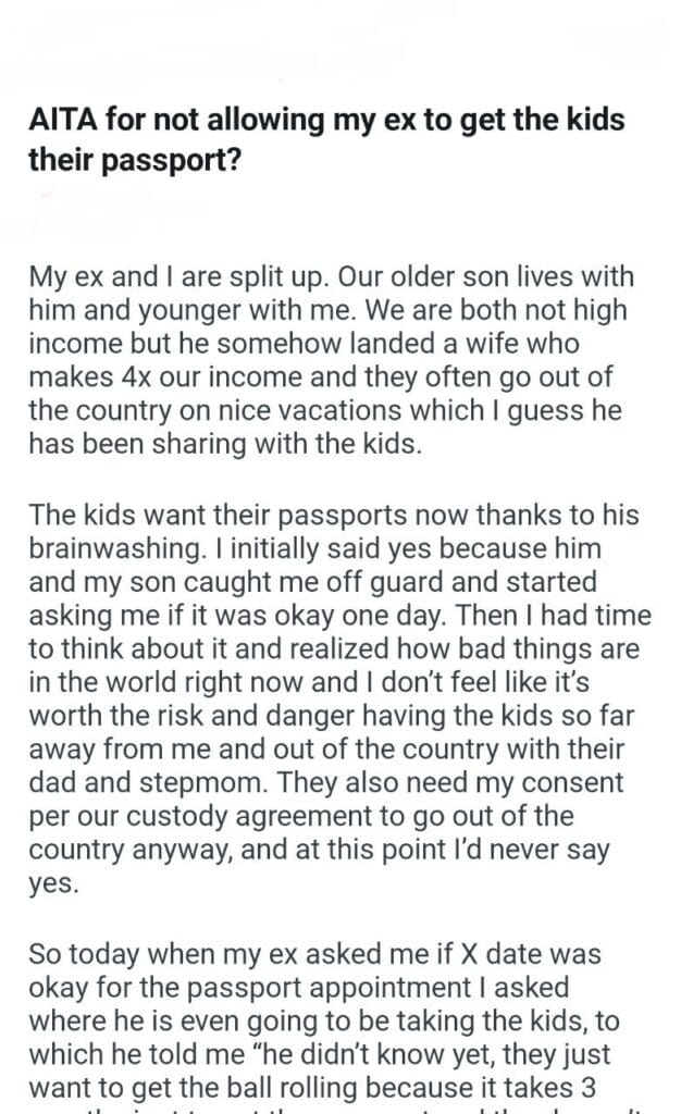 the kids passport Related Posts my friends dog with my grandparents AITA for telling my son keeping my pet due to My niece going to work because my fiancé my brother and his wife my older son telling my sister the reason my ex’s daughter our older son MIL after she kept saying AITA for telling my sister in law