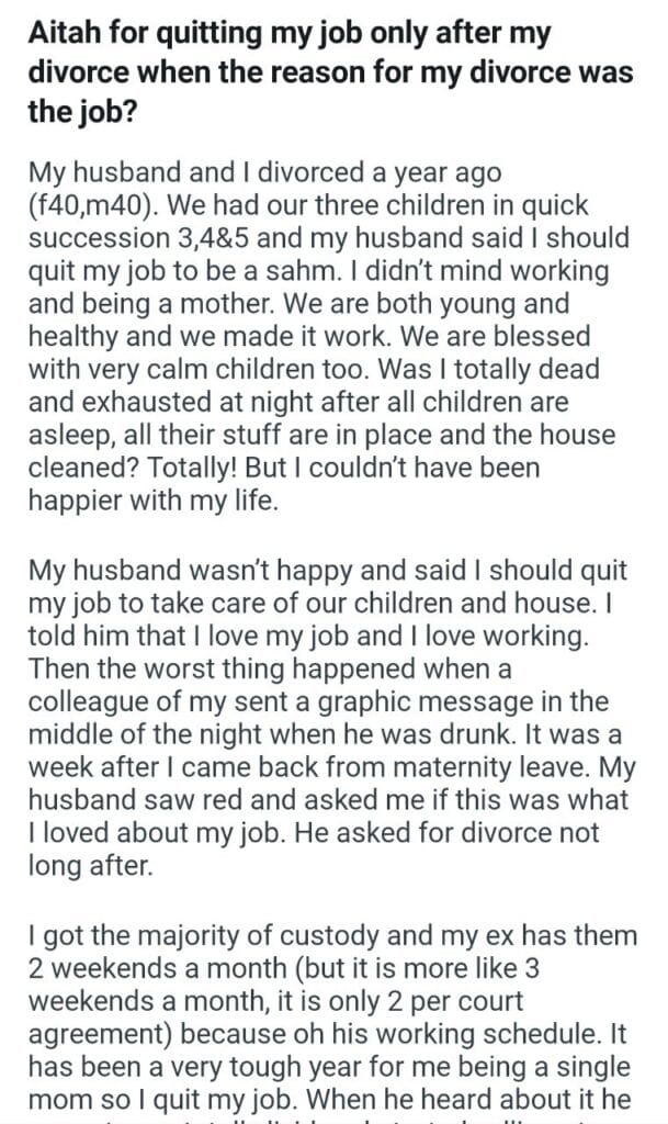 the reason for my divorce Related Posts asking my sister if my daughter my(52M) daughter(28F) divorcing my husband my niece’s college leaving my wife separate meal for my niece my mil from our kids choosing to spend timeĀ my dog sleep my master bedroom memory book more towards bills telling my girlfriend my children’s bus driver my mom and siblings