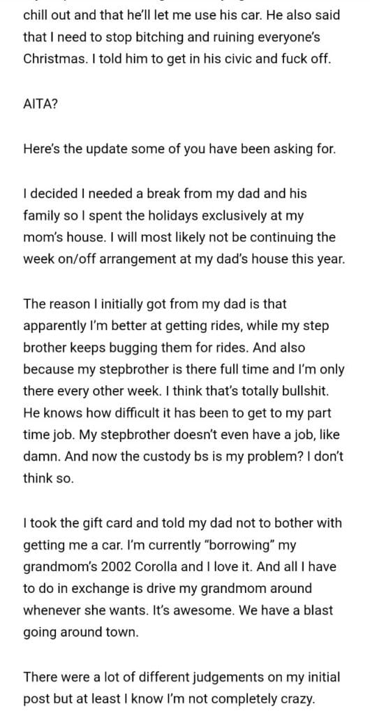 the same Christmas present Related Posts spend Christmas at home the wedding weekend friend’s daughter her company’s annual cousin’s pregnant gf even though I’ve always boss’s PTO knit at work my personal needs for what her grandparents said wife’s espresso giving my husband food babysit my sister’s kid a text I sent WIBTA if I called