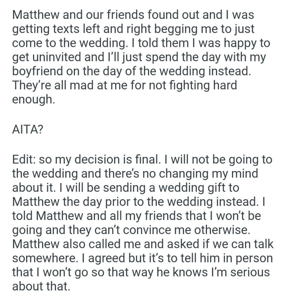 to my friend’s wedding Related Posts FOR LAUGHING AT babysitting my nephew Christmas Day visits us from her wedding my ex wife car My (30M) best man (31M) our nursery to our christmas dinner seeing my nephew my choices for my wedding my parent 5k 10x more my (25M) boyfriend about my driving telling my fiance if he