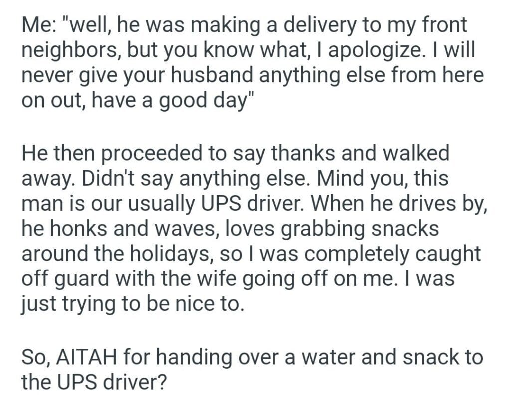 water and a snack Related Posts my ex right after don’t understand the boundaries my wife (30F) birthday dinner my grandparents My GFs friend (25F) me and her stepdaughter his inheritance to his mom Told my neighbor with my soon to be wife leaving my husband after pregnancy prank My Husband To have Access for sitting during Thanksgiving dinner telling my exes mother