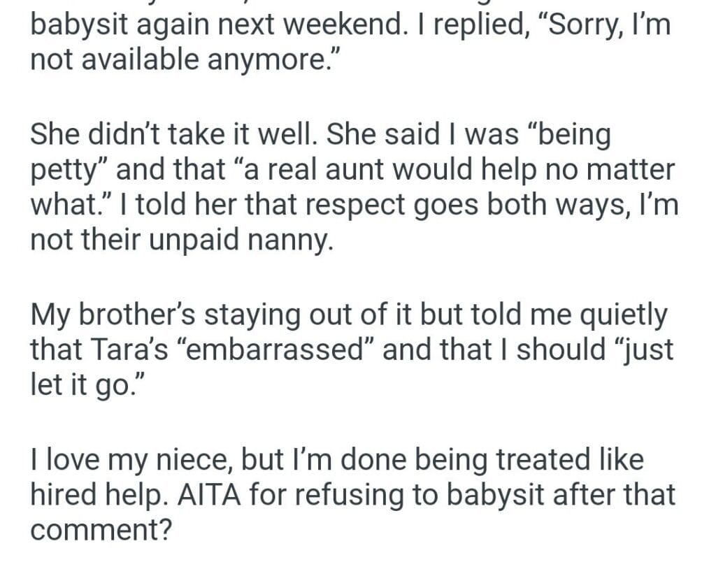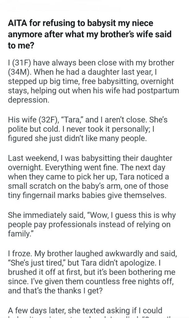 what my brother’s wife said Related Posts been telling people my baby to daycare my favorite ring author’s name Christmas morning into our marriage over a “joke” my (24M) husband for daycare is easily worth as our home My best friend wedding my friend along Me or my wife during my birthday dinner support I think
