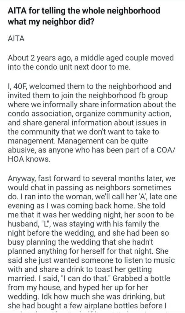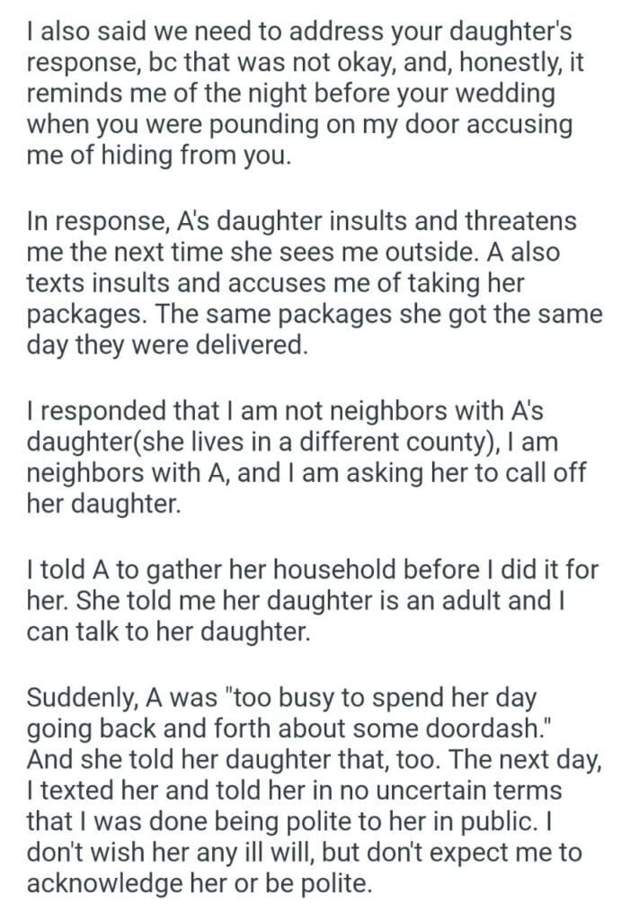 what my neighbor did Related Posts AITAH for telling my BIL that helping I didn’t AITA for demanding my colleagues my GF’s phone AITAH for telling my SIL daughter lives for free with us AITA for changing the wedding venue my fiancé her parent can’t live with us my husband’s friend to stay in our house picking her up at the airport at 3AM my bf over Mariokart my Dad and his wife after they refused my girlfriends wigs my GF did and asking for space AITA for expecting