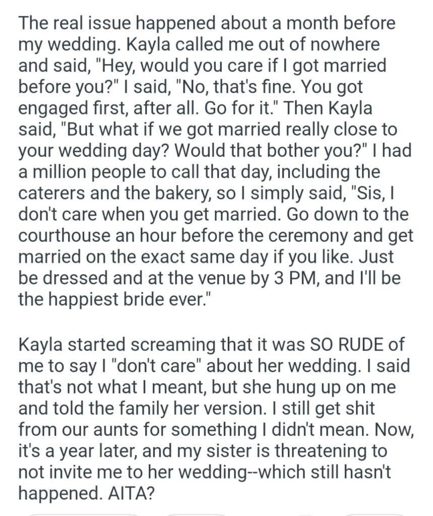 when she gets married Related Posts because of my looks my car for work her best friend’s husband below my apartment my boyfriend after he chose me my SIL’s Christmas gift list how they treated me at my husband Christmas for my kids telling my boyfriend Im thinking share my inheritance with the siblings sons bail choosing to get married secret from my family in middle school