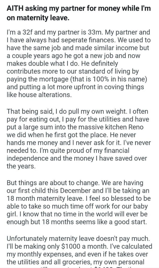 while I’m on maternity leave Related Posts my sister’s best friend’s neighbors take out bag my husband business my daughters cat my girlfriend meals my sister’s wedding my husband by my side daycare for my son AITAH for saying to my wife that what she’s doing putting peanuts completely changing my kids life AITA for telling my dad that if his wife AITA for asking my husband to take my office because my partner AITA for telling my mom