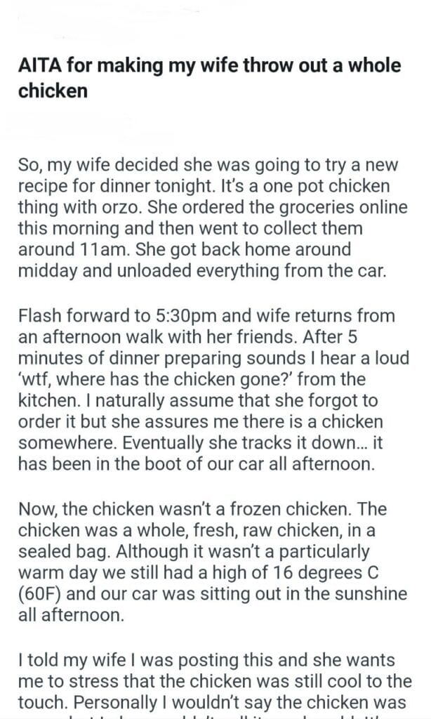 whole chicken Related Posts her own gift tags cousin deserved expensive Christmas gift off work my restaurant my brother and his wife my husband 34M husband to retire my (37f) husband from Christmas (again) seeing my child my sons fathers child 7th grade My boyfriend’s mom gave telling my brother’s wife