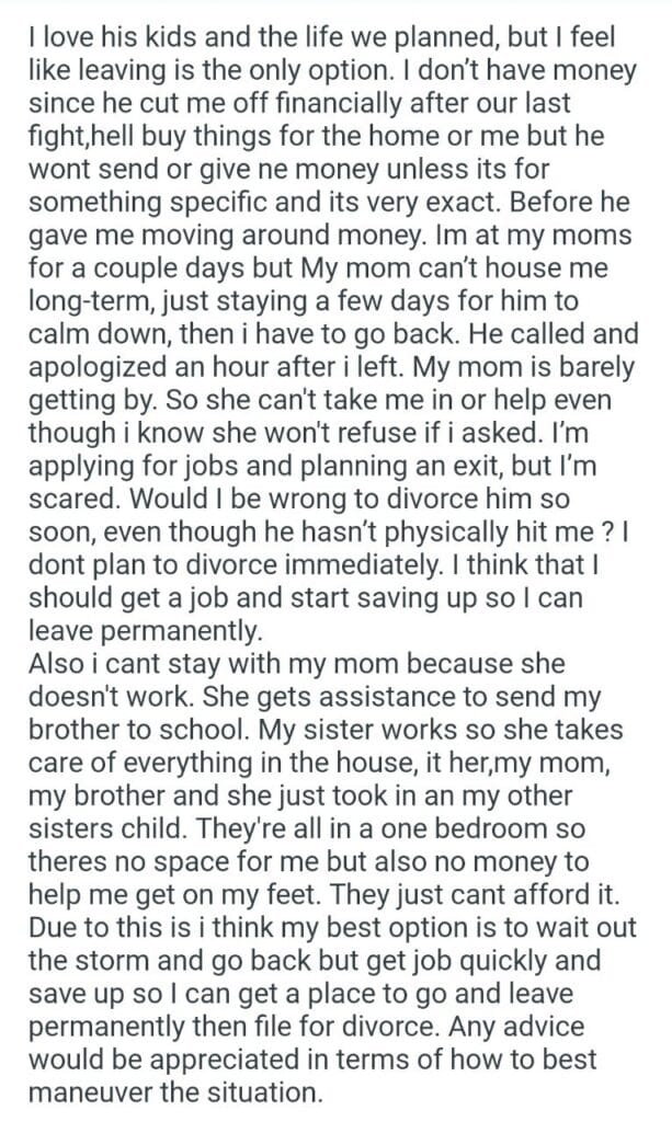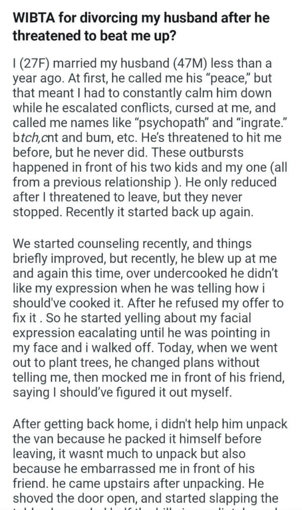WIBTA for divorcing my husband Related Posts AITA that I asked (F32) is back stepdaughter going her standards for letting my daughter my MIL up my mom’s room my friends cats covering for my coworker my half sibling’s mom my son’s stepkids my pregnant fiancee my boyfriend does with me walk the dog my friend’s dog