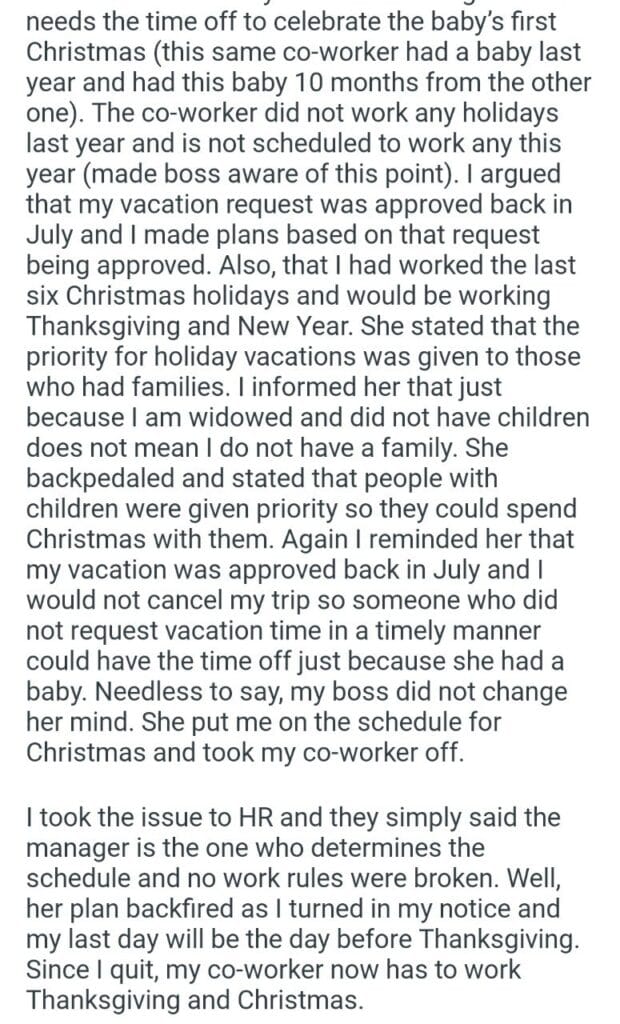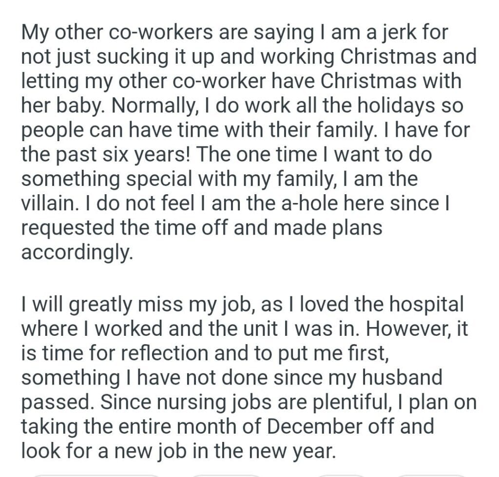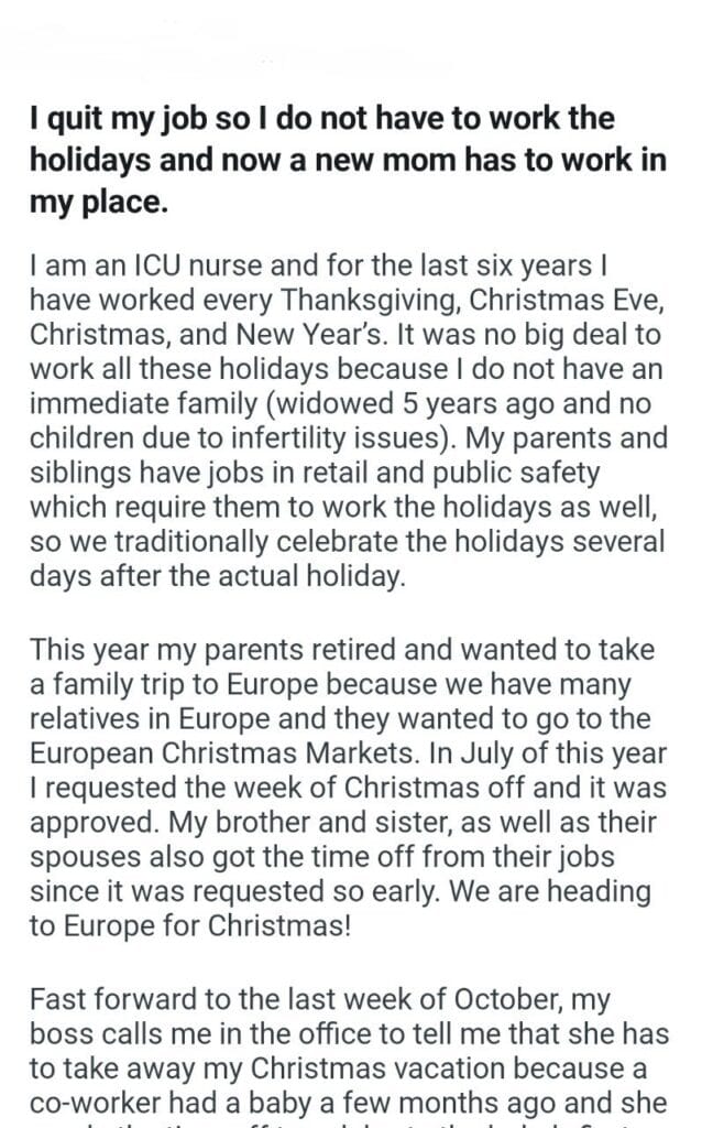 work the holidays Related Posts be having my wedding the way I want for how i responded nothing to do my car bills my nanny family medical board leaving my wife My dentist asked adopting a cat my family and wife my old neighboor my chores his ex wife babysit my husbands kids go to Christmas Dinner