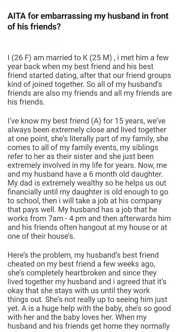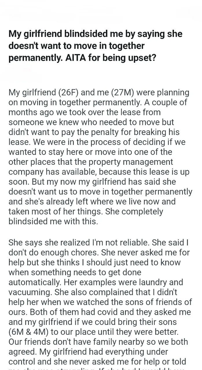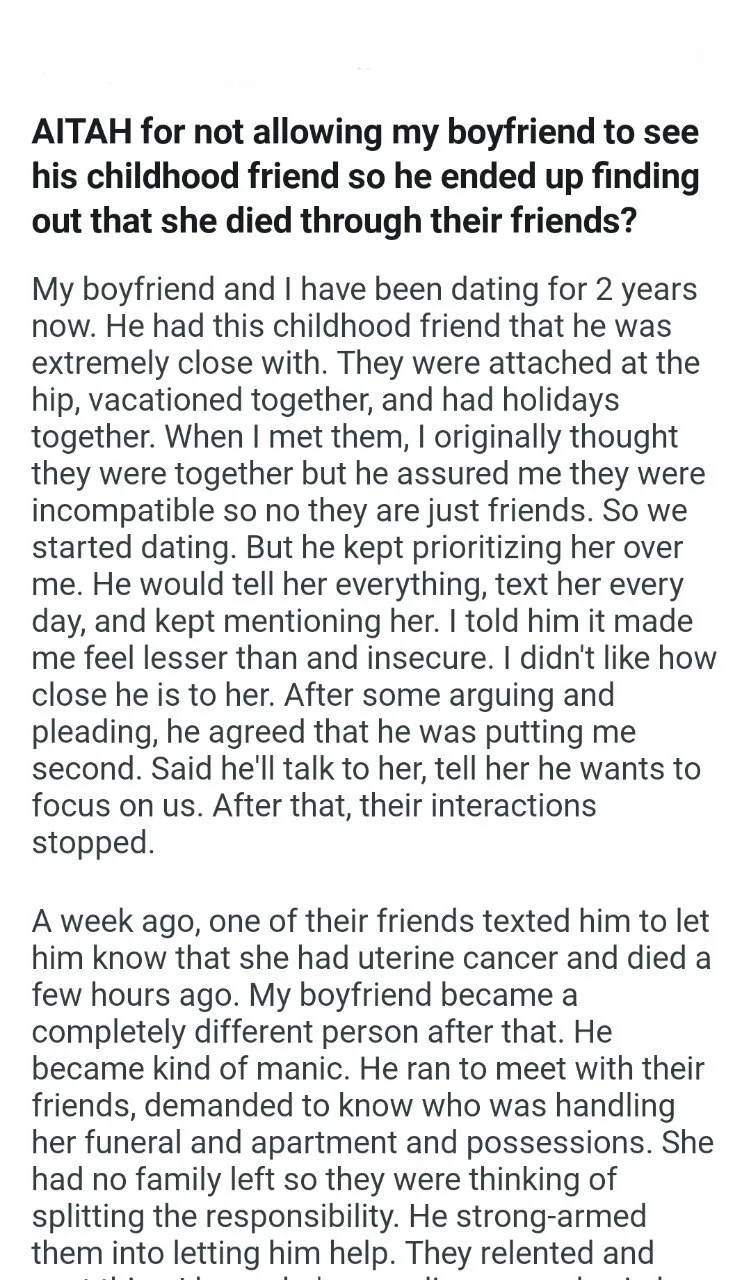 wouldn’t work Related Posts his childhood friend by saying she doesn’t want in front of his friends her friend’s birthday cook for Christmas dinner “pranking” my bf’s dad It’s positive my 18th birthday party take care of her kids my bf’s family Christmas gifts my girlfriend for rides my girlfriend’s cosplay my boyfriend’s toy after I thought my boyfriend our “Couple Vacation”